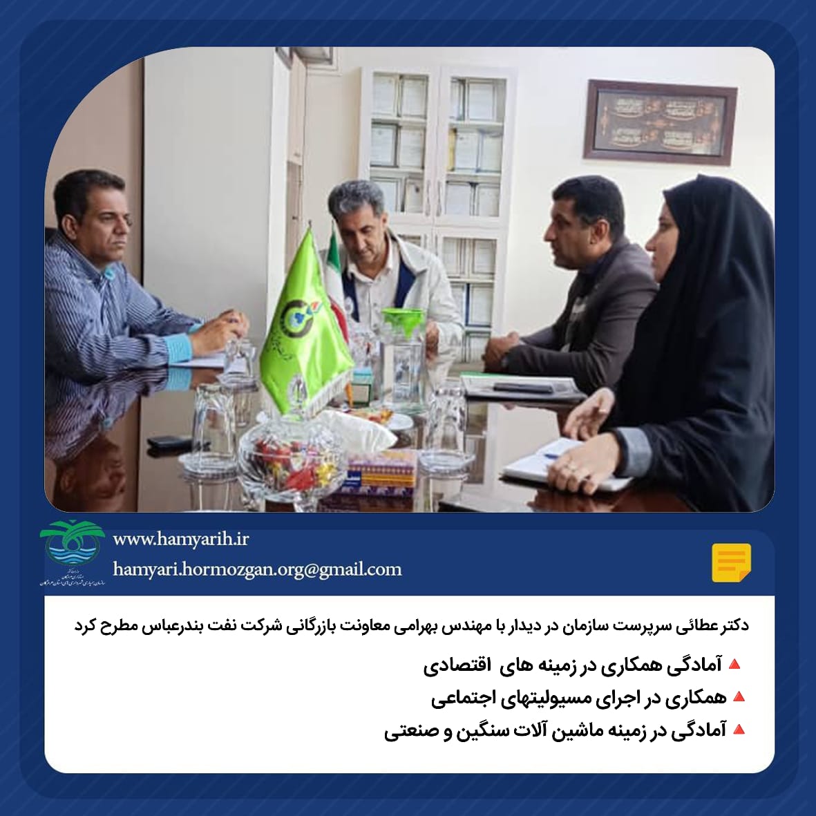 سازمان همیاری شهرداری های استان هرمزگان آمادگی هرگونه همکاری با شرکت ها و ادارات استان میباشد admin دی ۱۲, ۱۴۰۲ Continue Reading Previous: سرپرست سازمان همیاری شهرداری های استان هرمزگان «حماسه نه دی ماه گفتمان مردم بود»Next: پیام سرپرست سازمان به مناسبت سالروز شهادت سردار سرافراز حاج قاسم سلیمانی دیدگاهتان را بنویسید لغو پاسخ نشانی ایمیل شما منتشر نخواهد شد. بخشهای موردنیاز علامتگذاری شدهاند *دیدگاه نام * ایمیل * وبسایت ذخیره نام، ایمیل و وبسایت من در مرورگر برای زمانی که دوباره دیدگاهی مینویسم. Related Stories تیر ۲۳, ۱۴۰۴ انتصاب مدیرعامل جدید سازمان همیاری شهرداری های استان هرمزگان 1 min read انتصاب مدیرعامل جدید سازمان همیاری شهرداری های استان هرمزگان تیر ۲۳, ۱۴۰۴ دیدار مدیرعامل و معاونین سازمان،با معاون عمرانی استاندار و رئیس هیئت مدیره همیاری شهرداری های استان هرمزگان 1 min read دیدار مدیرعامل و معاونین سازمان،با معاون عمرانی استاندار و رئیس هیئت مدیره همیاری شهرداری های استان هرمزگان خرداد ۶, ۱۴۰۴